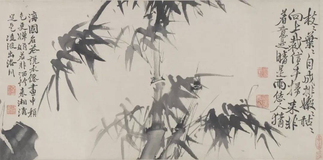 古人画墨竹,一般是根据观察月光下竹子的投影而作。徐渭作的《画竹》就是根据阳光照射其阴影而作,是一种艺术化了的竹子,“只取叶底萧萧意”,生气勃勃,往往能“因风欲动”,犹如惊雷滚滚,“一扫白电愁长空”,“卷去忽开应怪叫,皂龙抽尾扫风雷”,笔墨更加灵动。