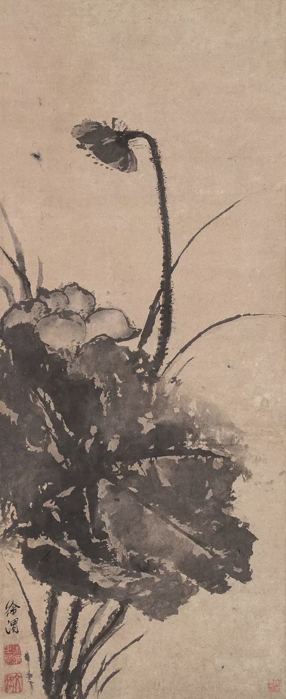 徐渭舍弃了表面的浮华的东西,而深入到了事物的本源之中。强调发挥主观能动性,反理学,反传统。这种想法跟当时的政治背景有关,晚明时期,王阳明的“心学”为许多艺术家所崇尚。“平生江海心,游戏翰墨场”。徐渭几经功名失利,愤世嫉俗,特立独行,“心学”为他在文艺创作中找到了突破口,从而成就了他惊世骇俗的创作。